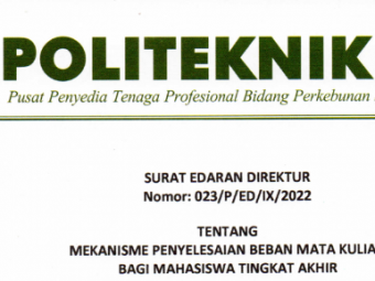 SURAT EDARAN Nomor: 023/P/ED/IX/2022 TENTANG MEKANISME PENYELESAIAN BEBAN MATA KULIAH BAGI MAHASISWA TINGKAT AKHIR Sehubungan dengan adanya pemantauan masa studi mahasiswa, bersama ini kami sampaikan beberapa hal yang dapat dilakuka..