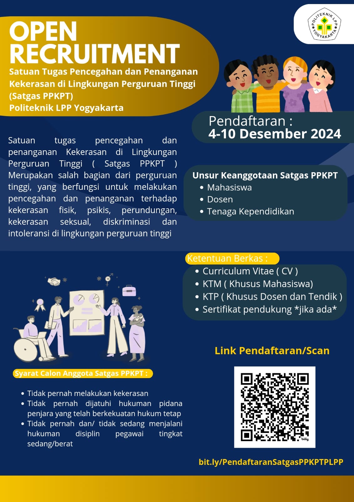 Open Recruitment Satuan Tugas Pencegahan dan Penanganan Kekerasan di Lingkungan Pergutuan Tingi (PPKPT) Politeknik LPP Yogyakarta