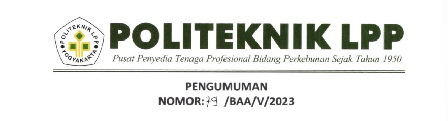 PENGUMUMAN Nomor : 79/BAA/V/2023 Sehubungan dengan telah diberlakukannya SK Direktur No.49/SkeplAK/III/2023 tentang Kehadiran Perkuliahan Bagi Mahasiswa Politeknik LPP Yogyakarta, kami mengingatkan kembali kepada seluruh mahasiswa untuk memper..